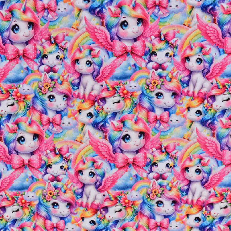 Bakgrunnen er rosa med enhjøringer i motivet.