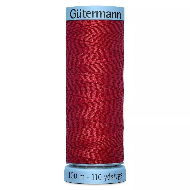 Sytråd i silke (S 303) fra Gütermann er en universaltråd laget av 100% silke, og er egnet til å sy i tynnere stoffer. Tråden har en blank overflate og kan virke lysere eller mørkere alt ut ifra hvordan lyset treffer.