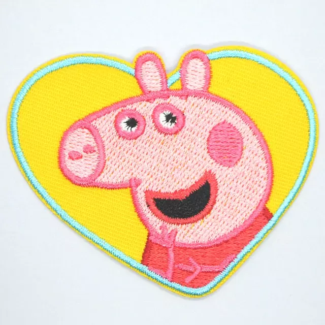 Strykemotiv av Peppa Gris fra den populære tegneserien med samme navn. Motivet er hjerteformet.