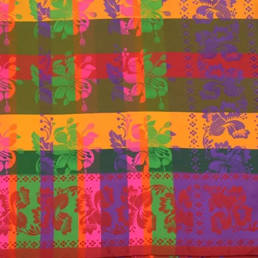 Silken og måten den er vevd på gjør at skjerfet får en nydelig glans og fargene endrer seg litt ut ifra hvordan lyset treffer.