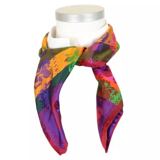 Silkeskjerf fra Tyrihans i mønster «Gabriella» farge 401. Skjerfet måler 70 x 70cm.