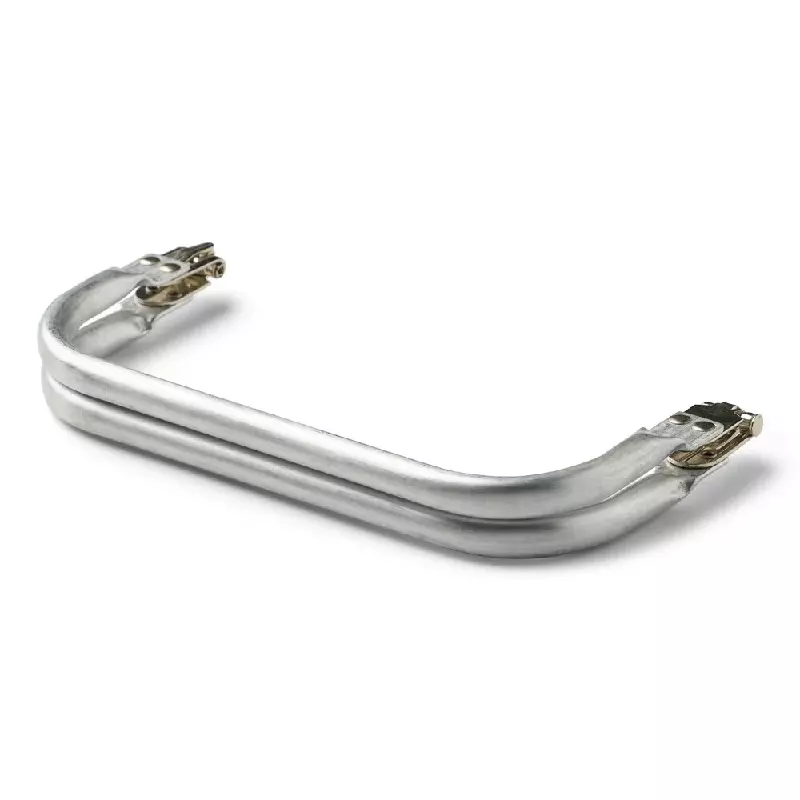 Hengslet veskebøyle (også kalt clutch frame) til clutch / veske som brukes til åpne- og lukkemekanisme og for å gi stabilitet og form til vesken. Denne er veldig godt egnet til heklede og strikkede vesker i tykt garn, og finnes i flere størrelser. Bøylen i seg selv er noenlunde rund og er ca. 1 cm i diameter, hengslene er flate og ca. 1,5cm brede. Hengslen kan åpnes helt slik at veskebøylen blir flat.