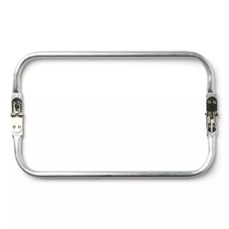 Hengslet veskebøyle (også kalt clutch frame) til clutch / veske som brukes til åpne- og lukkemekanisme og for å gi stabilitet og form til vesken. Denne er veldig godt egnet til heklede og strikkede vesker i tykt garn, og finnes i flere størrelser. Bøylen i seg selv er noenlunde rund og er ca. 1 cm i diameter, hengslene er flate og ca. 1,5cm brede. Hengslen kan åpnes helt slik at veskebøylen blir flat.