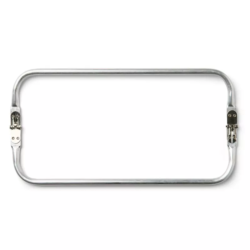 Hengslet veskebøyle (også kalt clutch frame) til clutch / veske som brukes til åpne- og lukkemekanisme og for å gi stabilitet og form til vesken. Denne er veldig godt egnet til heklede og strikkede vesker i tykt garn, og finnes i flere størrelser. Bøylen i seg selv er noenlunde rund og er ca. 1 cm i diameter, hengslene er flate og ca. 1,5cm brede. Hengslen kan åpnes helt slik at veskebøylen blir flat.